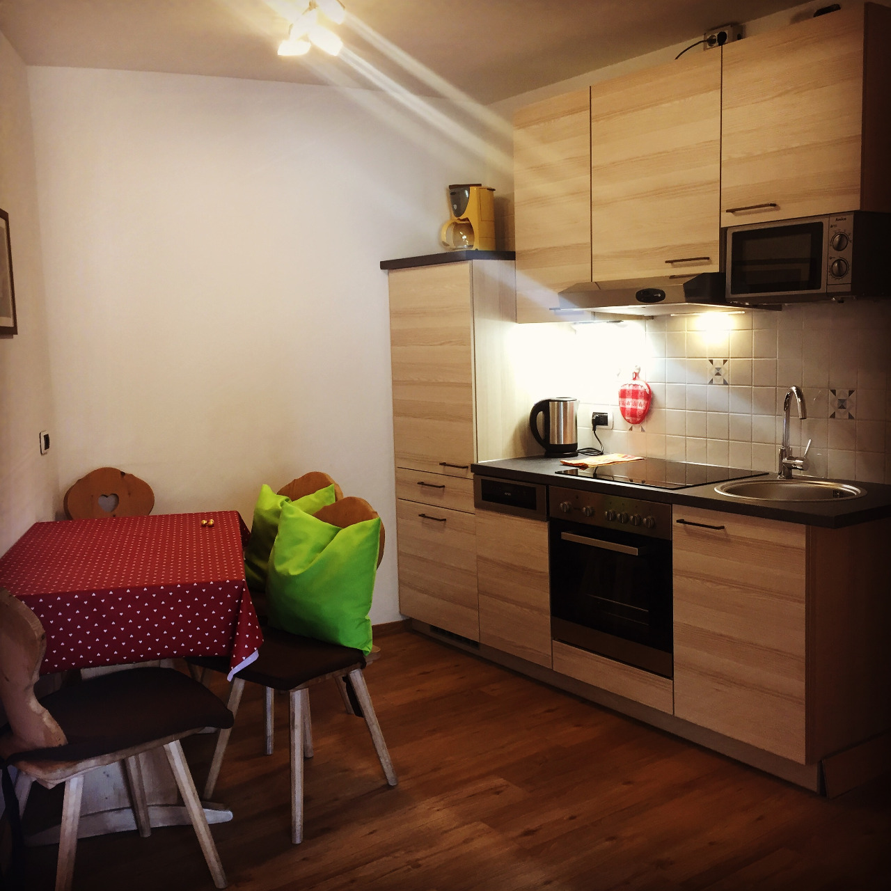 Unsere Wohnungen sind unterschiedlich groß und tragen des Namen des Berges in dessen Richtung sie schauen; alle Wohnungen verfügen über Bad, Balkon, Küche mit Wohnzimmer, Sofa/Divan, Abspülmaschine (ausser Wohnung Pares), Kaffeemaschine, Ofen, Microwelle, TV, SAT, Radio, Föhn, elektrische Rollos, Sprechanlage. Bettwäsche, Handtücher, Tischdecke und Trockentuch sind vorhanden. Eine geschlossene Garage sowie auch ein Abstellplatz im Freien, Skischuhtrockner und Skidepot, eine geschlossene Terrasse fürs Frühstück oder zum lesen oder auch für die Kinder zum spielen stehen unseren Gästen zur Verfügung. Der Garten mit Gartenhäuschen, Hüpfburg, Grill, Liegestühle und Schirme laden zum entspannen und abschalten ein.